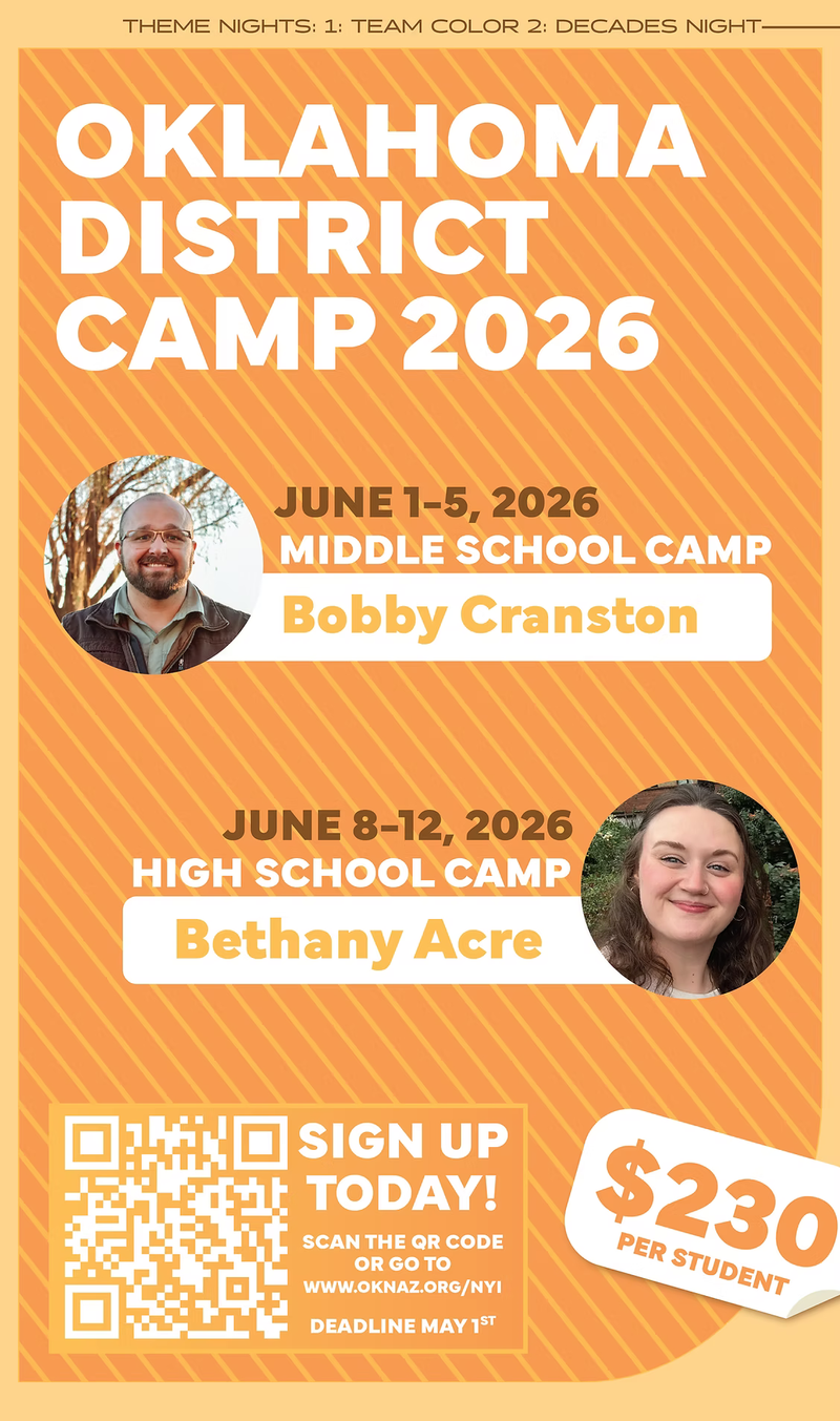 Join us for Oklahoma District Mid High Camp (For students that have completed grades 6-8).